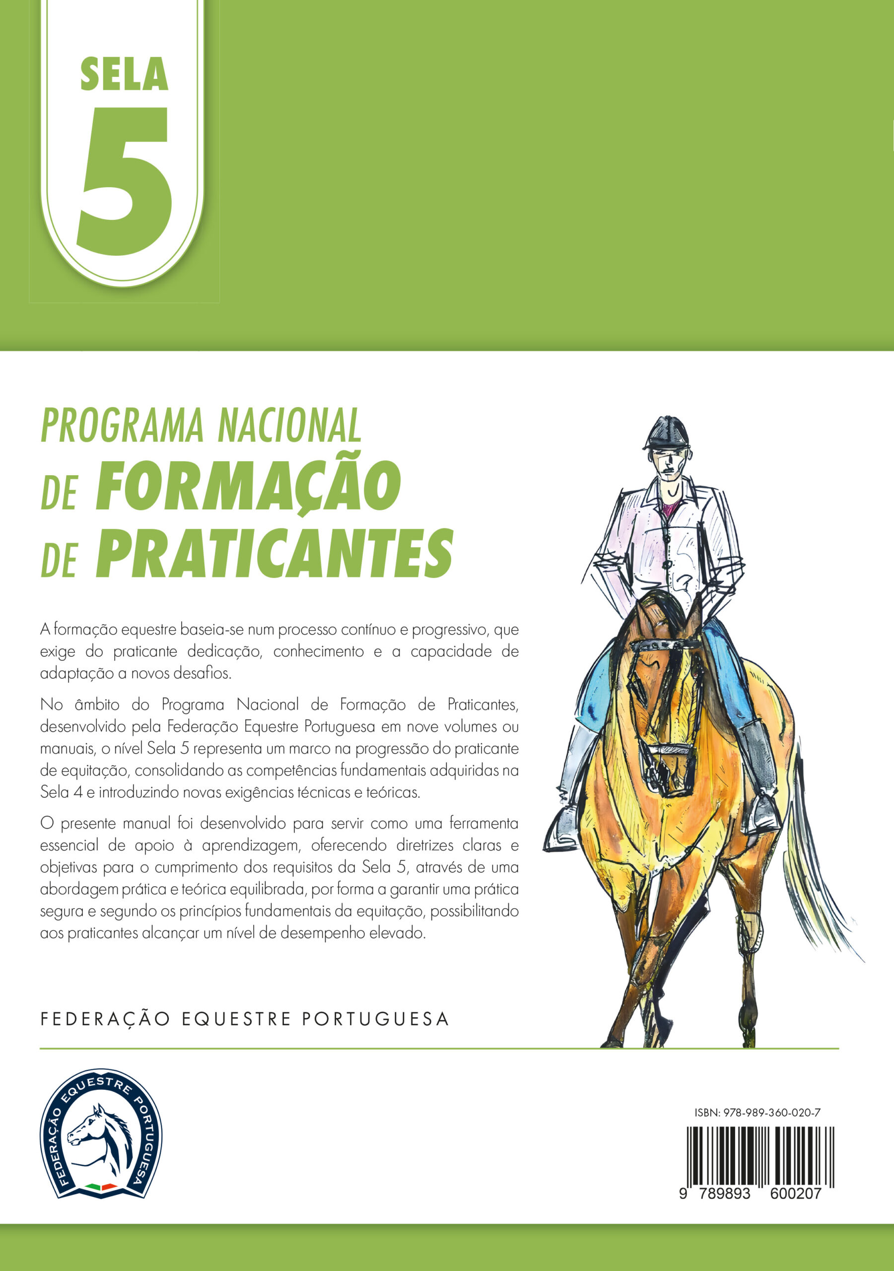 No âmbito do Programa Nacional de Formação de Praticantes, desenvolvido pela Federação Equestre Portuguesa em nove volumes ou manuais, o nível Sela 5 representa um marco na progressão do praticante de equitação, consolidando as competências fundamentais adquiridas na Sela 4 e introduzindo novas exigências técnicas e teóricas.
